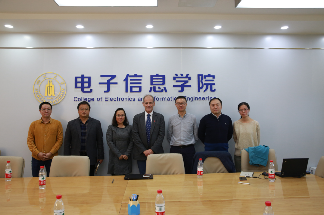 进行交流座谈。冯国英院长、张启灿副院长、杨阳副院长、雷印杰副院长以及吴丽老师在基教A110会议室热情接待了MAUSSION Pascal副校长一行。