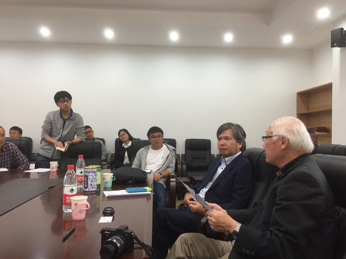 学生分会协会介绍,与分会学生进行交流。此后,钟哲强博士和刘元坤副教授分别向Toyohiko Yatagai教授介绍了各自实验室工作,Toyohiko Yatagai教授就相关问题与报告人进行了激烈讨论。