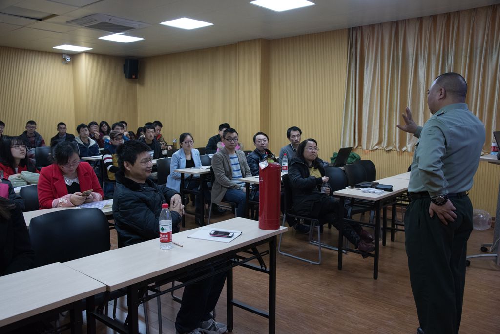 2016年12月2日,在望江校区新滨江楼4楼会议室,激光?微纳工程研究所全体师生参加了消防培训。培训主要内容是深入分析全国典型火灾案例,讲解火灾逃生、自救、报警方法以及典型灭火器的使用方法。培训结束后,成都全民防火中心高级讲师陈建章教官在冯国英教授的陪同下对各个实验室进行了安全检查,对安全隐患进行了排查并提出整改意见。