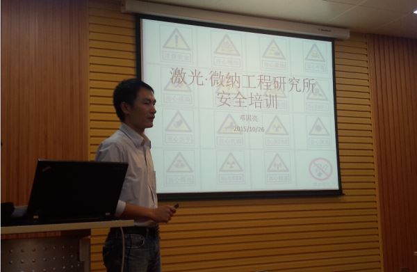 培训会上,冯国英教授首先向全体师生强调了安全的重要性,提出激光·微纳工程研究所始终坚持“以人为本,安全第一”的理念,积极倡导所内全体师生“高高兴兴实验,平平安安学习”的安全意识。冯国英教授同时指出此次安全培训的目的是为了营造安全和谐的氛围,促进激光·微纳工程研究所全面健康地发展。