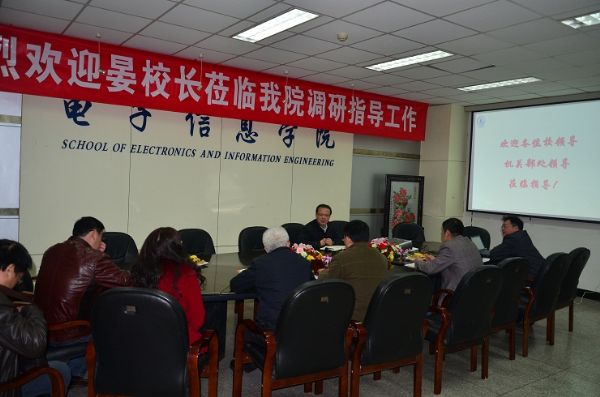 随后,晏校长和学院各位与会学院领导及系主任进行了充分交流,对学院当前的发展情况给予了充分肯定,针对薄弱环节提出了意见和建议。晏校长指出,推动学院发展的重点是师资队伍建设和人才培养,学院要充分总结过去经验,扬长避短,大胆改革创新,从人才引进机制、师资队伍建设、配套政策等多方面着手,着眼长远,着眼大局,想方设法,解放思想,整合各方资源,不断完善学院师资队伍建设,进一步提高学院科研水平和教学质量,为学院长远发展奠定坚实基础。