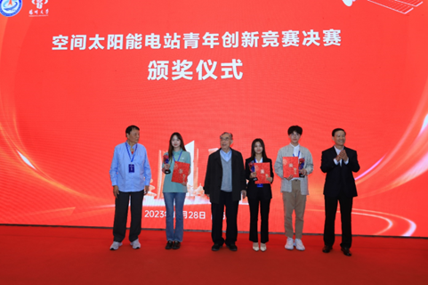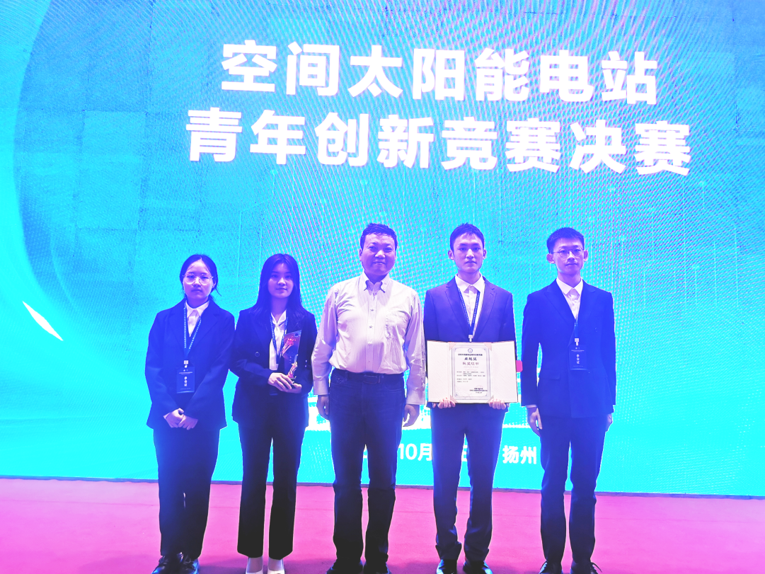 研究生范睿楠、景建伟、米俊霖、周艺林和蒲香组成的代表队,在刘长军和闫丽萍教授的指导下完成的参赛作品《透明“绿色”能量接收系统——空间太阳能电站地面新模式》,经现场汇报、展示和专家质询,获全国第二名。