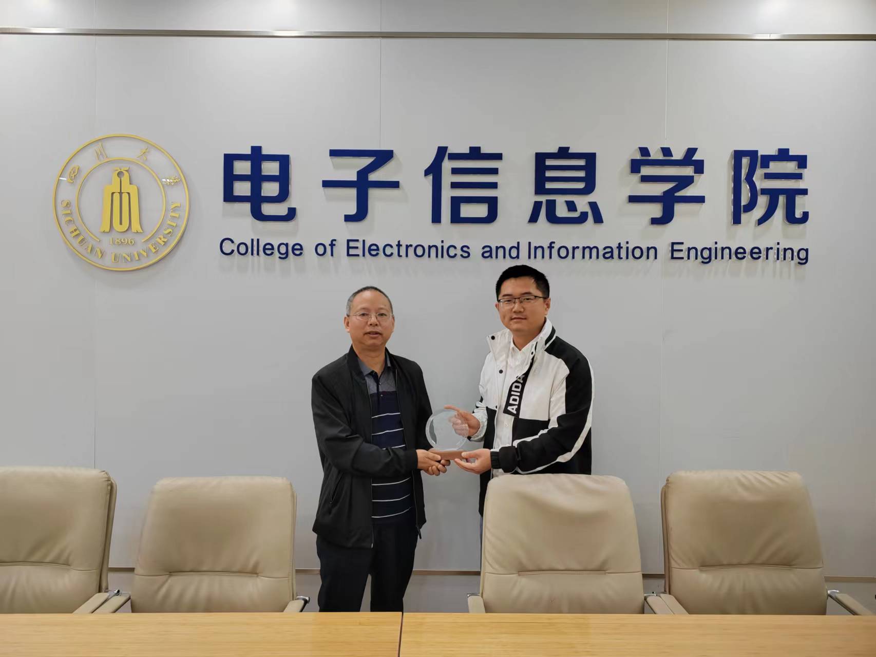4月24日上午中国电科十所为小欧视频 颁发优秀生源地奖牌
