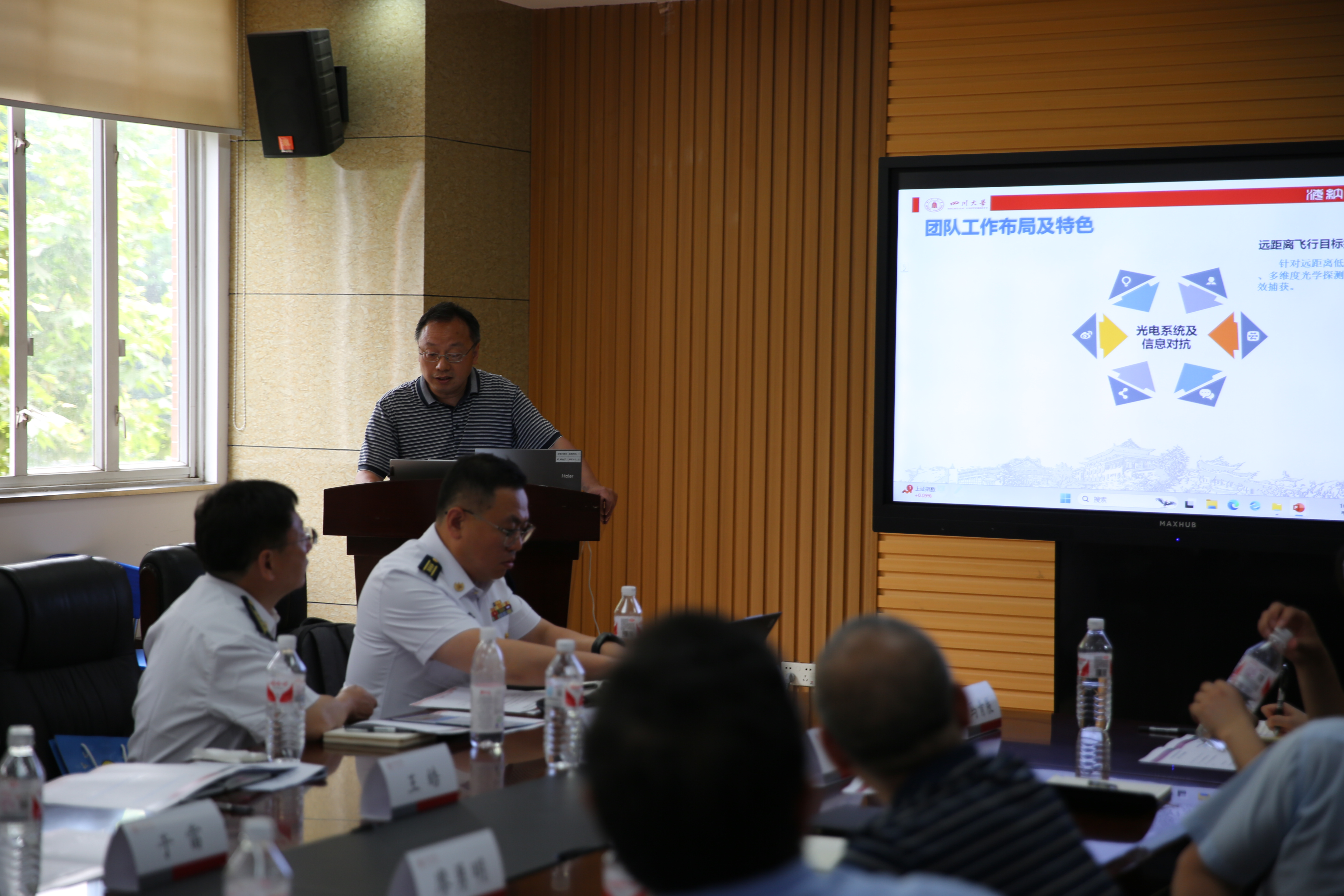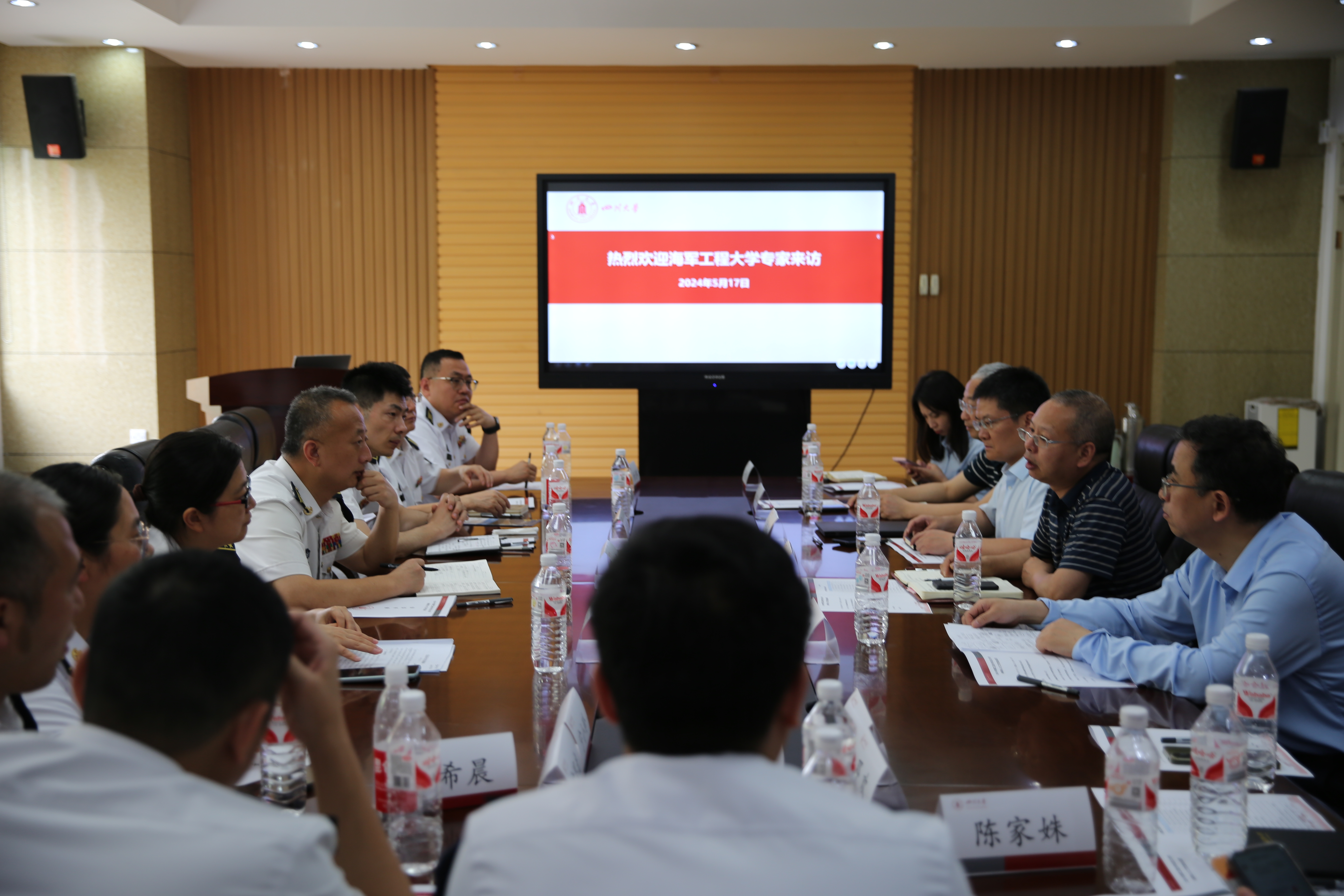 海工大电子工程学院于院长分别就海工大和电子工程学院的情况、学院编制情况学科专业体系,目前投入研究的信息通信方向、水下信息网络和构造技术、指挥控制、信息对抗、水下攻防和作战数据等方面进行了介绍。宁老师介绍了兵器工程学院的情况,政治工作处王老师表达了海工大对人才引进的重视,介绍了对军队文职人员的具体需求,并可能将学校在西南地区的人才工作站设在川大。之后,海工大各学院教授分别介绍了人员需求和条件,非常欢迎小欧视频