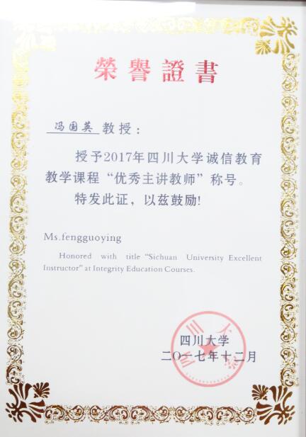 2017年诚信教育教学课程“优秀主讲教师”