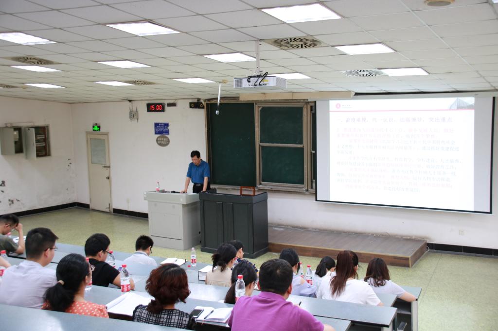 学院党委书记邰明松同志首先从做好学院宣传思想工作是加强党的建设的重要途径、是确保站稳树牢社会主义意识形态阵地不动摇,确保“立德树人”教育思想不变质、是树立学院良好形象的必然、是凝心聚力促发展的必然要求、是改革发展的重要保障、是学院文化建设厚底蕴的必然要求、是学院各项工作自我激励的要求等七个方面阐述学院宣传思想工作的重要意义,并指出学院一定要围绕“促进党建工作上新台阶”和“建设一流学院和一流学科”开展思想宣传工作,进一步统一了学院全员参与宣传的思想。邰书记随后通过剖析学院宣传思想工作存在的问题对学院宣传思想工作面临的挑战进行了总结,并对学院2018年宣传思想工作重点进行了安排部署,特别强调学院各部门领导一定要对宣传思想工作高度重视、统一认识、加强领导;要通过成立学生记者团和各部门老师联络员建立一支高效的新闻报道宣传队伍、加强工作交流、高端推送和业务培训力度;要加强宣传思想工作的阵地建设,有效利用好现有宣传工具;要落实工作考核和评优制度,提高宣传工作积极性。