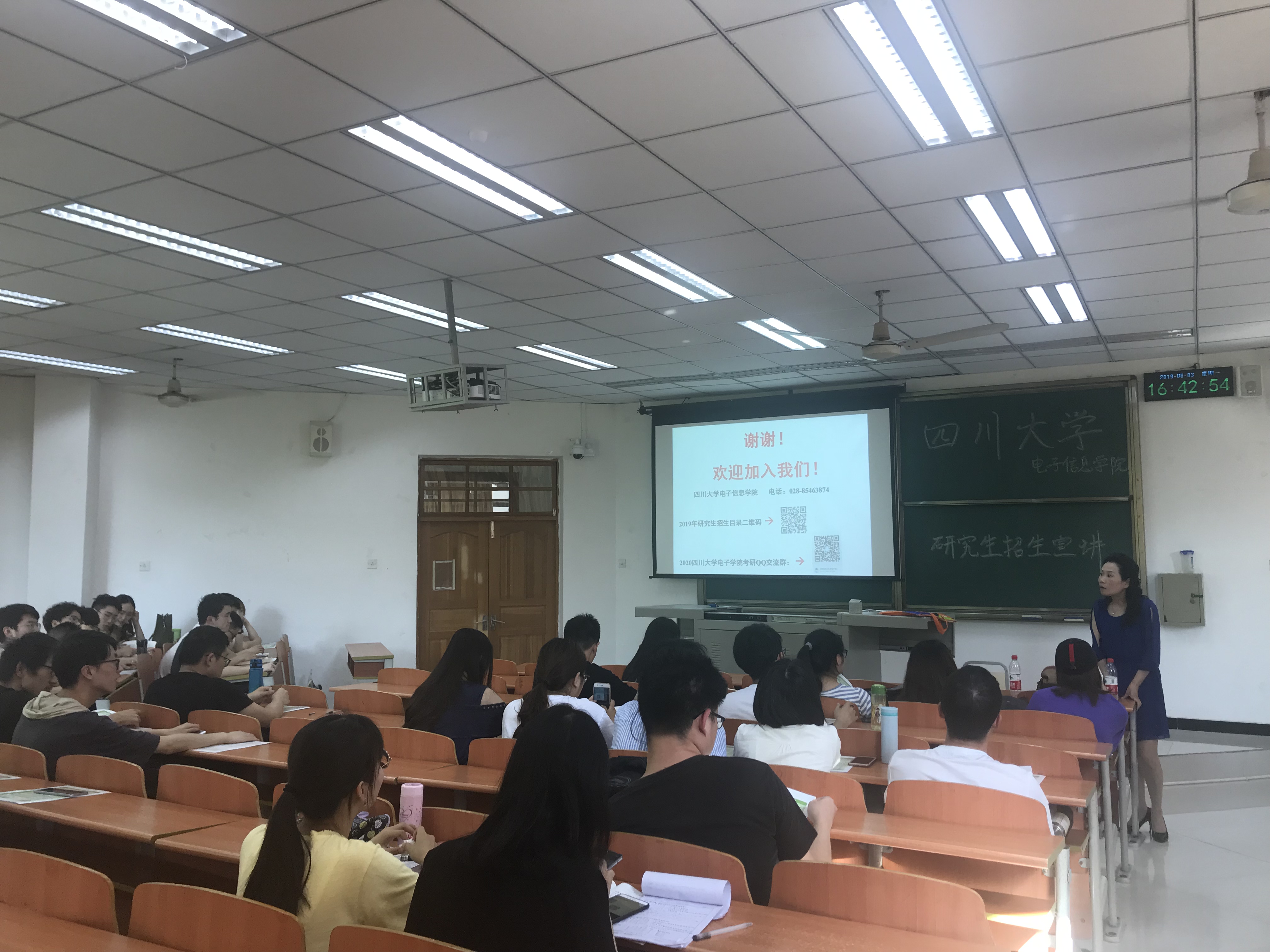 宣讲会首先由介绍我院研究生教育的整体情况、学科优势、特色培养、奖学金设置、夏令营举办情况等,随后对2019年优秀大学生暑期夏令营进行了介绍。宣讲会最后,老师们对学生提出的问题进行一一解答。