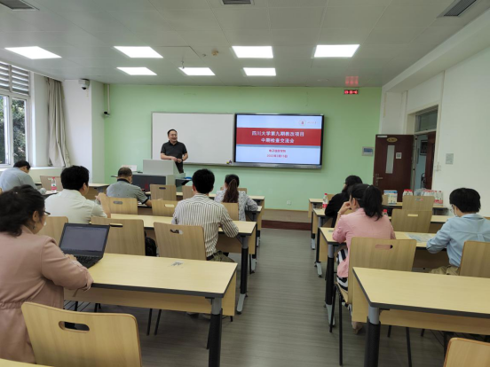 第九期教改项目立项的总体情况,强调了中期检查交流会的重要性。学院一直大力支持教育教改工作,希望通过本次中期检查交流会,促进学院老师之间的交流和学习。随后各项目负责人就项目的实施基本内容、进展情况、项目已取得的阶段性成果、成果创新和应用情况、下阶段计划与预期成果等进行了详细汇报。