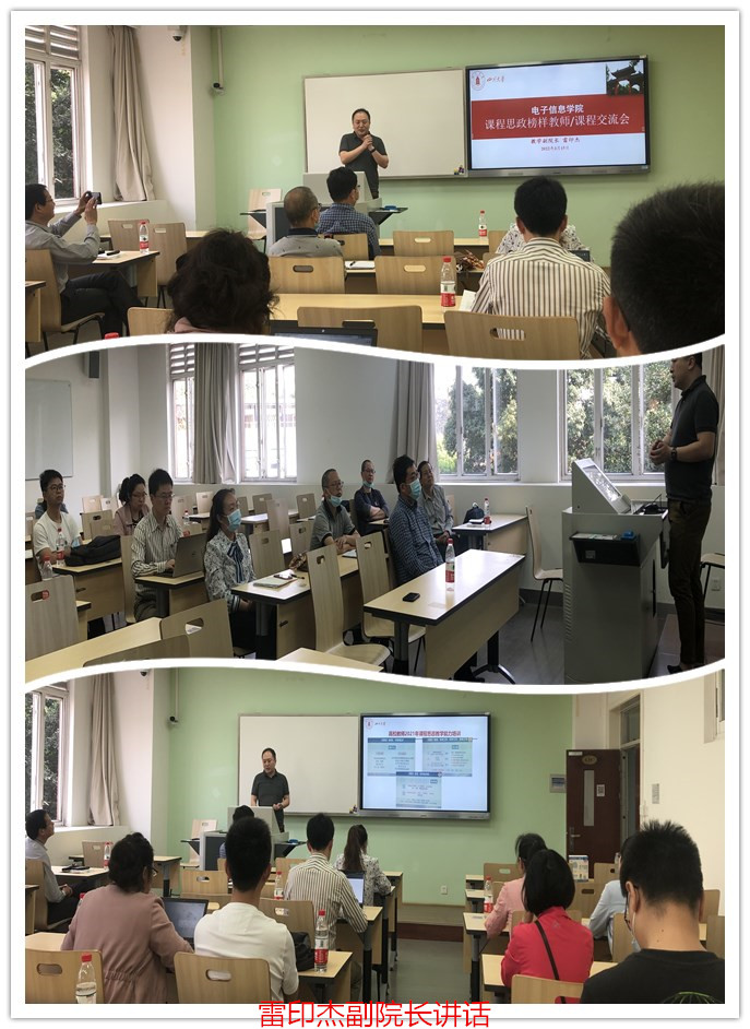 2022年3月15日上午,在基教A307教室,学院举行了2022年课程思政榜样建设课程/教师交流会。邰明松书记、廖勇明副书记、雷印杰副院长、卿粼波副院长、学院教学指导委主任杨晓敏教授及20余位教师参加。会议由雷印杰副院长主持。