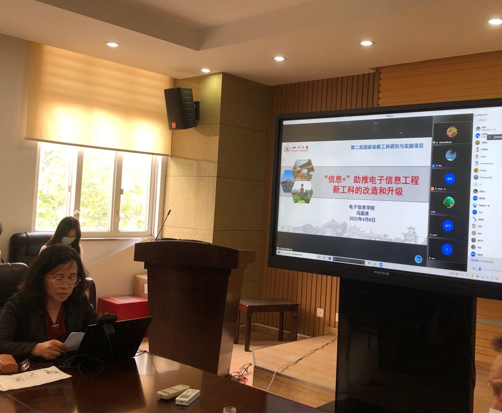 冯国英教授线下作报告。冯教授结合自己的教育部第二批新工科研究与实践立项项目——“信息+”助推电子信息工程新工科的改造和升级,详细交流了正在持续推进的工作情况。