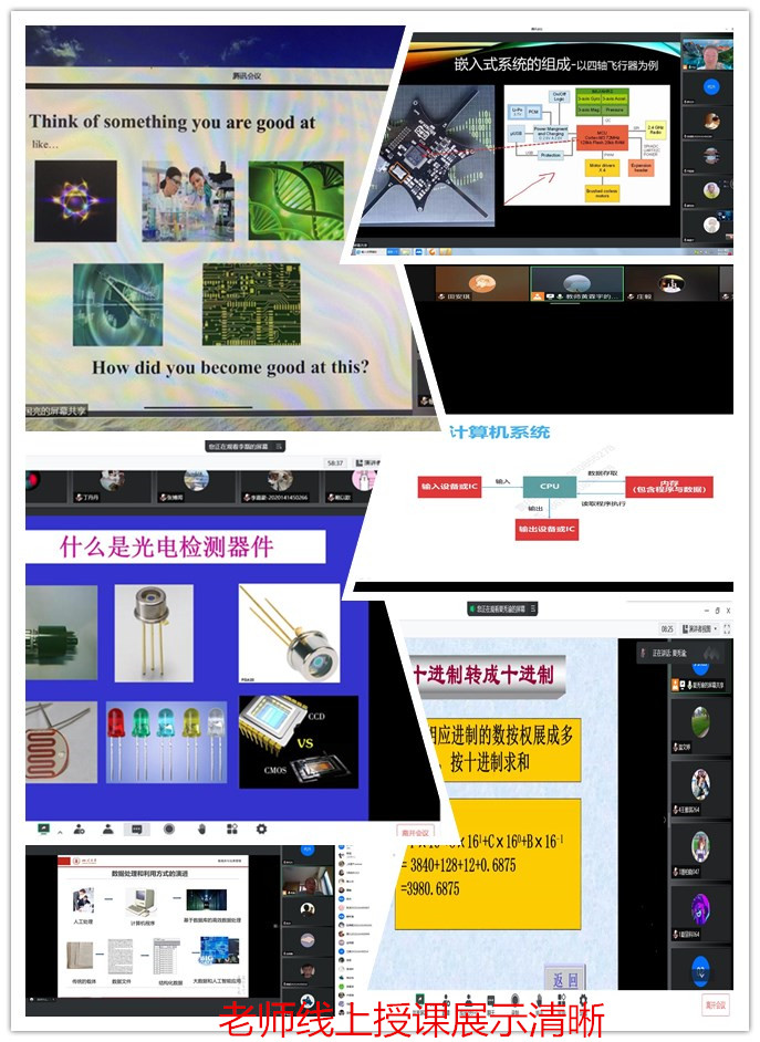 从检查和学生反馈情况看,上课老师都提前建立线上课堂做好线上开课测试工作,上课提前到岗,老师们备课内容充实,在直播系统里讲课声音清楚,课程内容展示清晰、顺畅,并能利用系统提供的各种功能和QQ群与学生互动,明确告知学生课程学习目标、要求及考核方式。学生到课率高、课堂气氛良好。