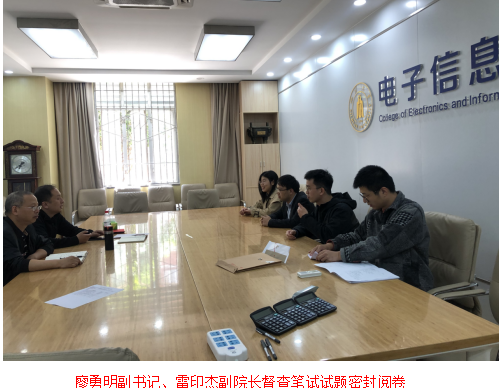 4月25日上午笔试完后,组织答卷密封、阅卷在学院基教A110会议室进行,廖勇明副书记、雷印杰副院长现场检查了工作。学院实行命题和阅卷独立,三位阅卷老师流水阅卷。教学科2名老师协助阅卷老师复核、统分、录入成绩。