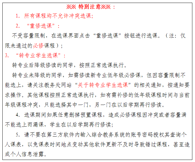 (四)选课以课程号为唯一标准,不能以上课的教师或者课程名称为标准进行选课。