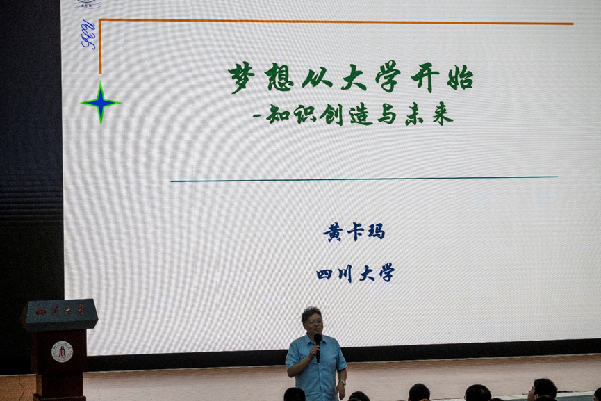 黄卡玛教授以“梦想从大学开始——知识创造与未来”为题,结合自身经历,用幽默风趣的语言,列举身边大量例子,再现科学研究过程中的诸多细节,鼓励同学们要勤于思考勇于创新,努力成为强国建设、民族复兴伟业的可靠接班人。他指出,当代大学生应当具备六种能力。一是培养广泛的兴趣,从寻常生活中发现不一样的东西;二是增强创新欲望,带着问题深入探索;三是大胆设想细心求证,善于借用哲学方法思考问题;四是勤奋好学,脚踏实地去求索;五是自强自信,练好干事创业真本领;六是胸怀天下百折不挠,不向困难低头,以饱满热情奋勇前行。