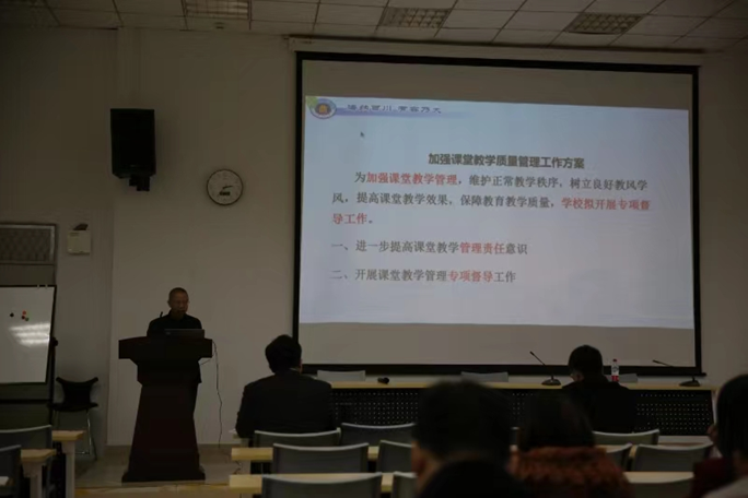 会上,廖勇明副书记对学校教务处“关于进一步加强课堂教学质量工作方案的通知”进行了文件内容解读和传达。学院要求老师们认真贯彻落实学校文件精神,加强课堂教学管理、规范课堂教学秩序,推进教师以高尚师德言传身教、传递正能量,激发学生学习主动性和积极性,提升人才培养质量。