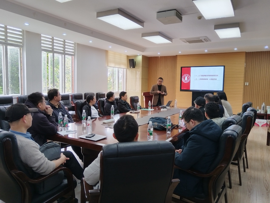 于4月2日上午9点在基教A303会议室举办“AI赋能一流课程建设研讨会”。会议特邀计算机学院(软件学院)副院长严斌宇做主题讲座。此次讲座由学院教学副院长雷印杰主持。