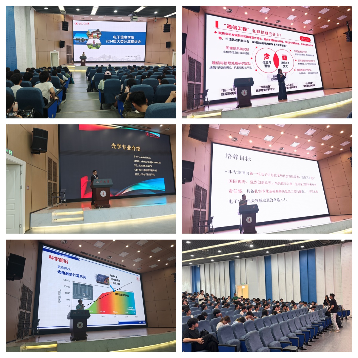 4月18日下午2:00,在江安校区水上报告厅开展了大类分流宣讲会,参加此次宣讲会的是学院骨干教师华伟、申俊飞、赵平、赵悟翔、孙亚平,学生辅导员陈晓娟,教学科老师以及学院2024级电子信息类所有本科生。