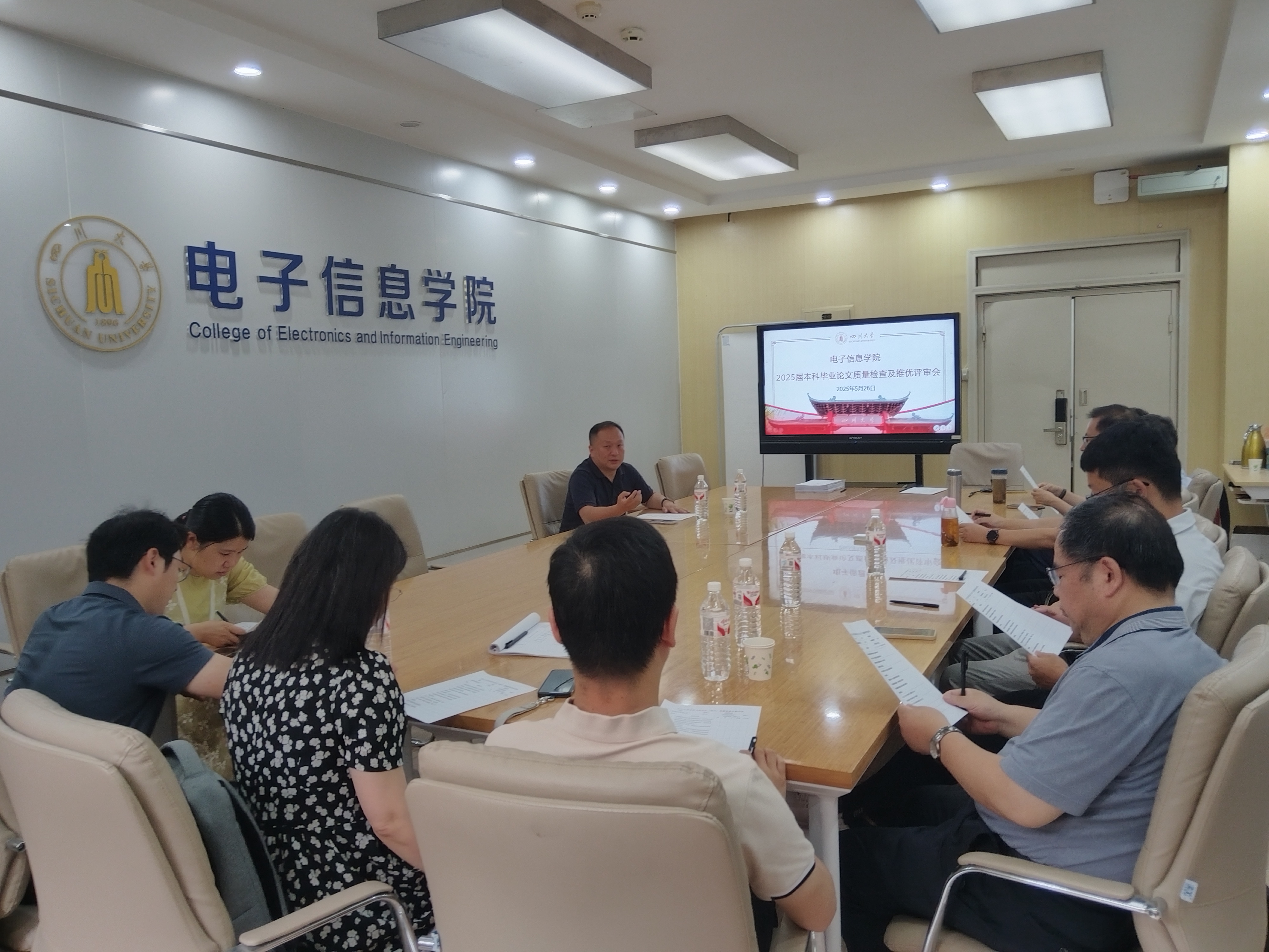 于2025年5月26日在基础教学楼A110B会议室组织召开了2025届本科毕业论文质量检查及推优评审会。学院教学副院长、学院督导、各系系主任、副系主任参会。会议由教学副院长雷印杰主持