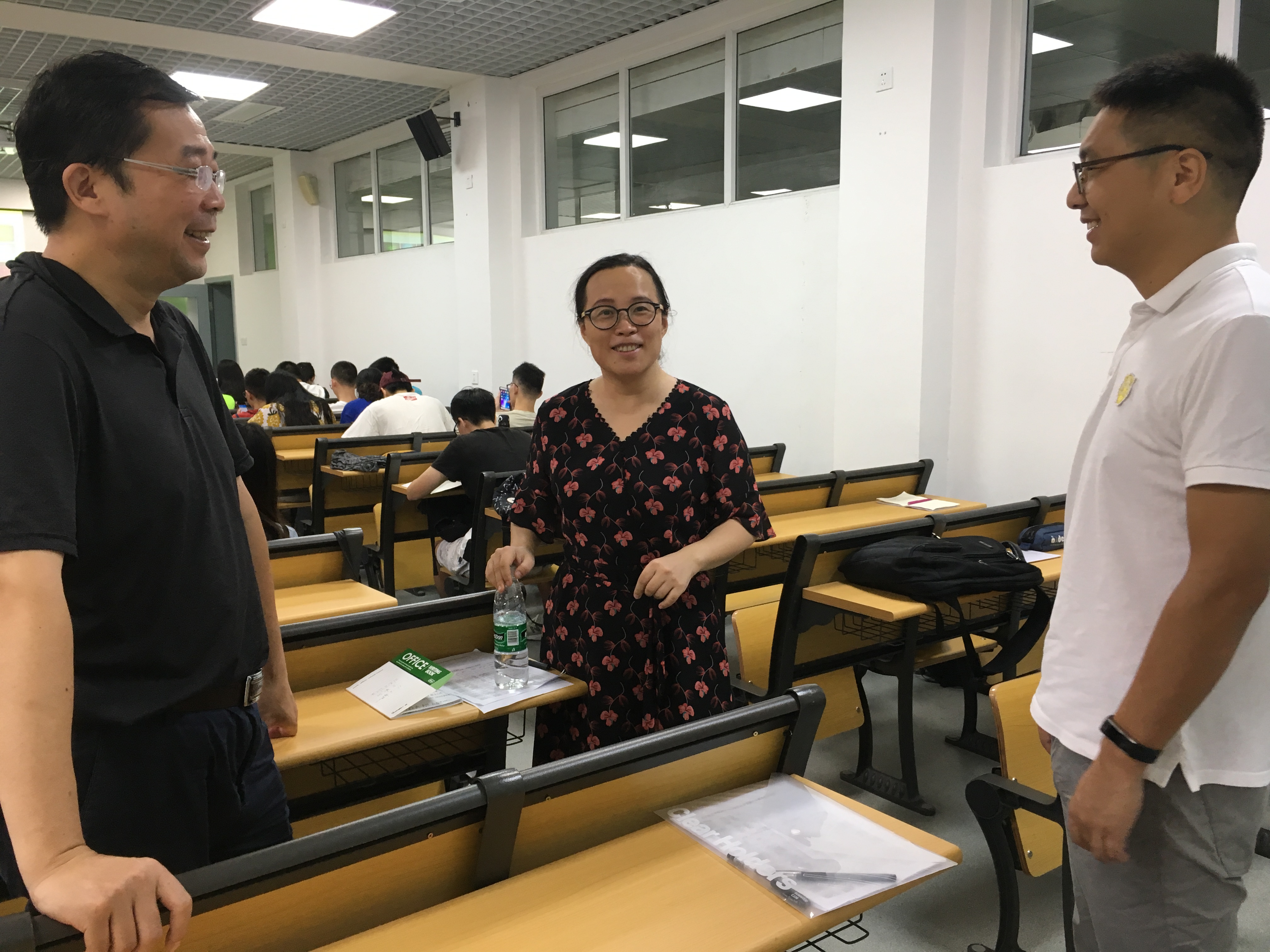 93日新学期正式行课的第一天,邰书记在望江基教检查了《交换技术》、《数字信号处理》课程的教师提前到岗及教学准备情况,在三教听取了冯国英院长讲授的《波动光学》和闫丽萍老师讲授的《电磁场与微波技术》课程。课间休息时,邰书记与老师亲切交谈,了解课程设置、课堂互动情况,要求老师做到教书育人,在传授知识的同时将社会主义核心价值观教育贯穿于教育全课程,坚持正确的价值引领。邰书记听课时,见到正在进行教学督导工作的学院教学督导陈元亨教授向他表达了感谢和问候。94日冯国英院长教学检查中进入课堂听取了《通信电子线路》和《嵌入式系统设计》课程,并在课后和老师交流,希望青年老师将自已的科研积极引入教学中开拓学生视野提升学生能力,同时建议课堂上加强研讨式互动式教学。