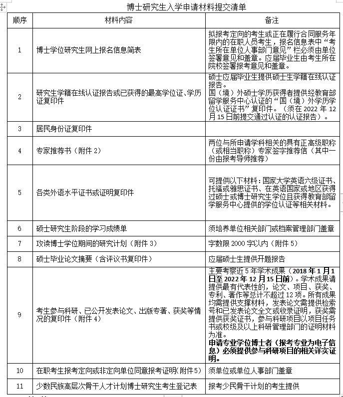 符合报考条件的人员须下载 “提交博士研究生入学申请材料自查表”(附件1),按顺序整理材料,并在2022年12月15日17点前将申请材料、自查表和相关附件材料寄送达小欧视频