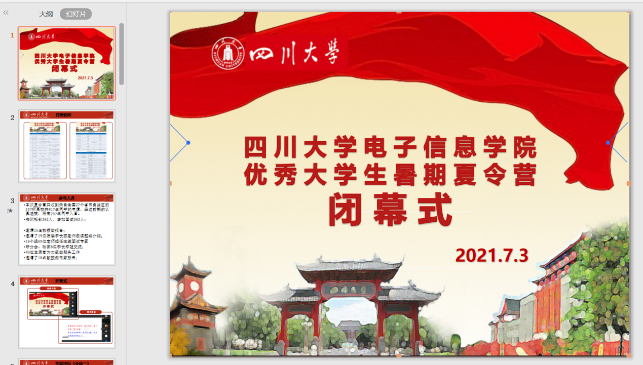 2021年优秀大学生暑期夏令营闭营仪式。依据本次夏令营综合评价标准和面试结果,夏令营组委会严格审核,营员中共有259名同学获得优秀营员称号,学院为优秀营员们线上颁发了优秀营员荣誉证书。