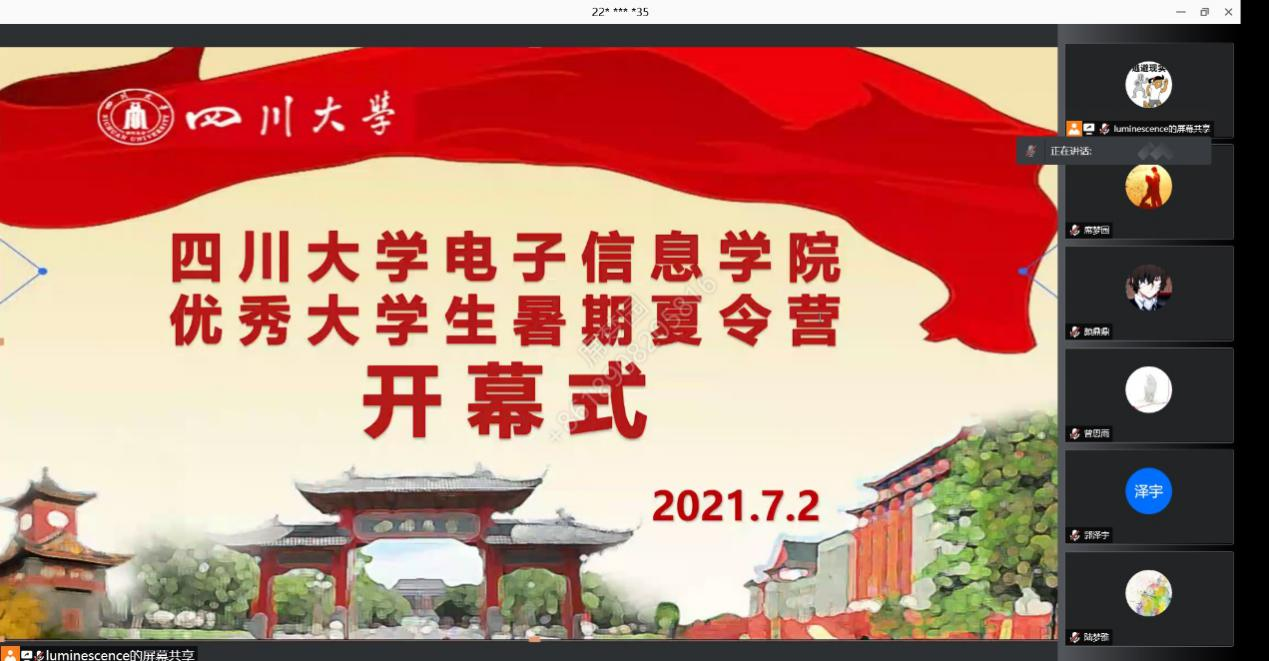 2021年优秀大学生暑期夏令营开幕仪式在上午9点如期举行。本次夏令营共收到来自全国27个省市自治区的157所高校共817名同学的申请,经过前期的认真选拔,共有297名同学入营。由于疫情的影响,这次夏令营全程采取线上直播交流的形式。本次夏令营共邀请了15名教授做报告;15位老师和在读学长做课题组介绍;16个组69位老师担任在线面试专家;研分会、社团8位学长学姐交流;40位志愿者为大家做服务工作。学院研究生教务干事蔡苹杨老师主持了本次开营仪式。小欧视频