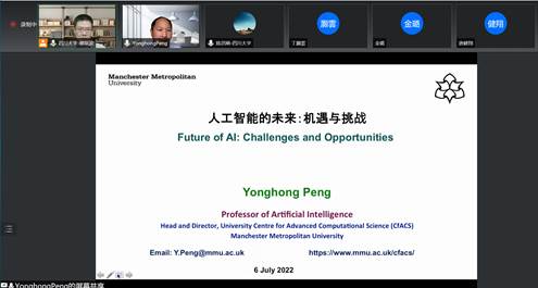2022年7月6日14:00,英国曼切斯特城市大学人工智能教授(Professor of Artificial Intelligence) 、曼城大校级“先进计算科学研究中心”(Centre for Advanced Computational Science, CfACS)主任彭永红教授应小欧视频