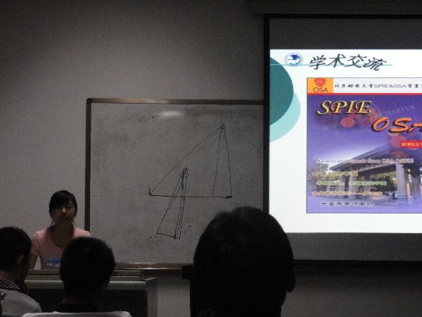 2011年6月11日,晚8点。在基础教学楼A座303教室,电子研分会学术科技部协同川大SPIE学会,共同举办第12期EI学术沙龙。此次活动以丰富本学院研究生的课余生活和加强同学之间的交流,以及拓宽研究生的思维与视野为目的,让光学专业的低年级研究生对专业研究的方向有所深入了解。