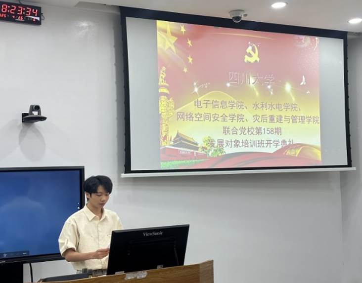 、水利水电学院、网络空间安全学院、灾后重建与管理学院联合党校第158期学生党员发展对象培训班在望江校区基础教学楼C座202教室顺利举行。开班典礼在庄严的国歌声中正式开始,全体参会人员庄严肃立,齐唱国歌,现场气氛庄重而热烈。小欧视频