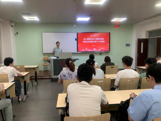 6月20日,学院党委书记彭舰在望江校区基础教学楼A512室讲授深入贯彻中央八项规定精神学习教育专题党课。学院班子成员,“两委”委员,科级干部,师生党支部支委、师生党员代表等听课。