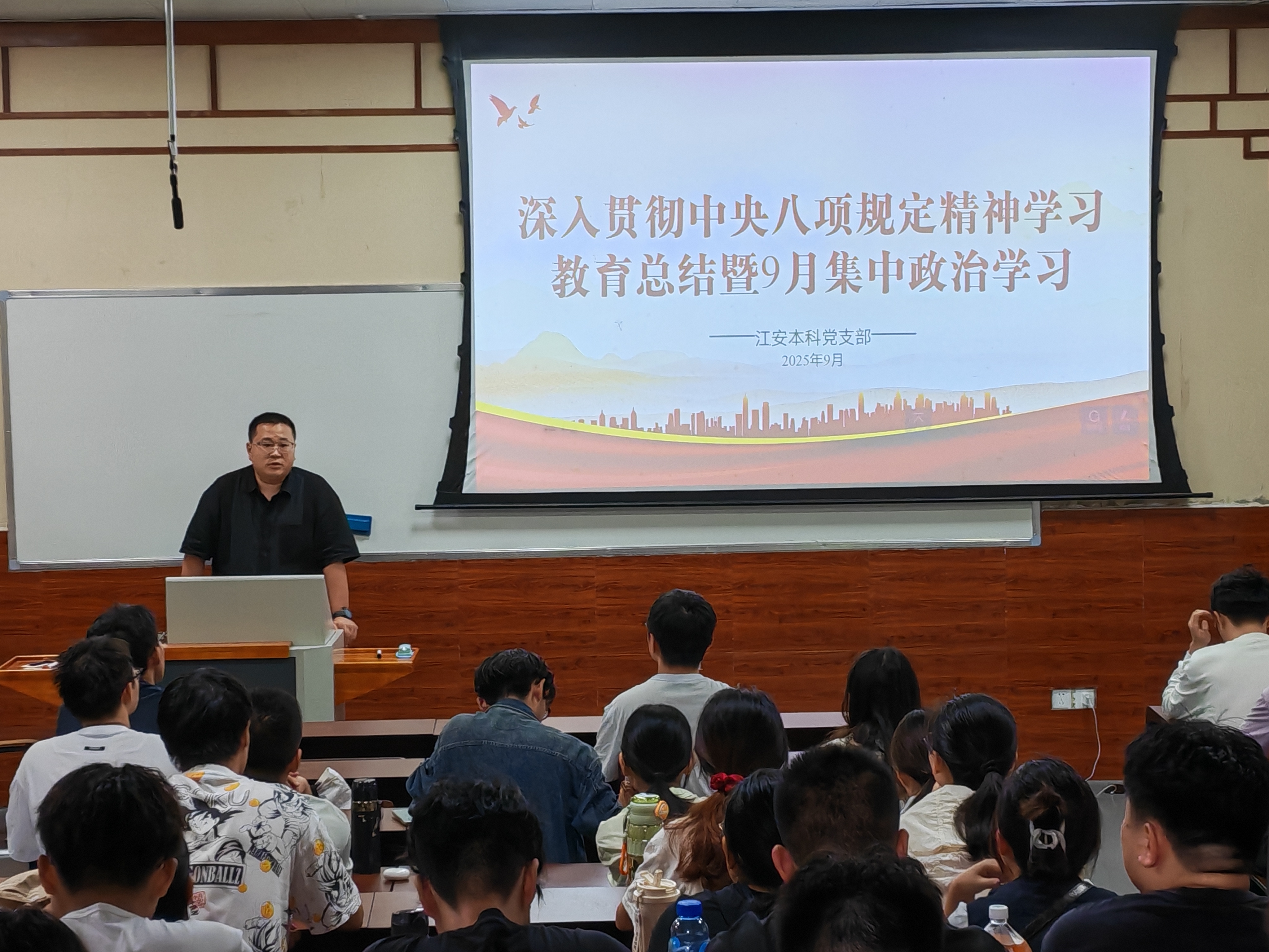 江安本科党支部在望江校区东二教学楼102召开深入贯彻中央八项规定精神学习教育总结会议暨9月集中政治学习。支部书记申鑫主持会议,支部党员和部分入党积极分子参与。