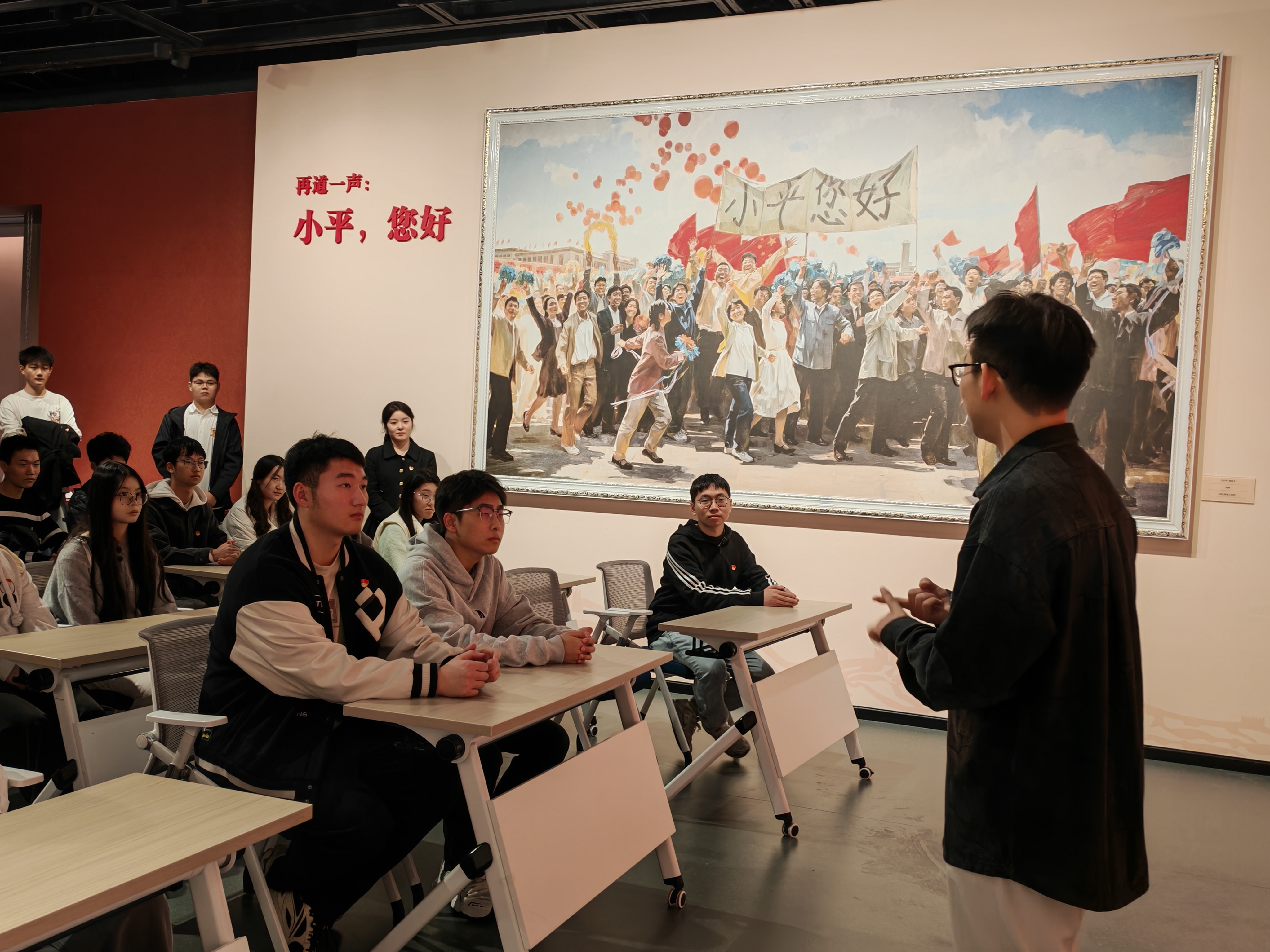 下午2点30分,两校师生准时在博物馆入口处集合。在庄重肃穆的展览氛围中,同学们跟随讲解员的步伐,依次参观了“走出广安”、“戎马生涯”、“艰辛探索”、“非常岁月”、“开创伟业”等主题展区。一幅幅珍贵的历史图片、一件件充满年代感的实物展品,配合讲解员声情并茂的解说,将邓小平同志为民族独立、人民解放和国家富强不懈奋斗的光辉历程生动再现。特别是在“改革开放与人民生活变迁”互动体验区,通过场景还原和多媒体展示,同学们直观感受到了改革开放带来的巨大变化,对邓小平同志的历史贡献有了更加深刻的认识。