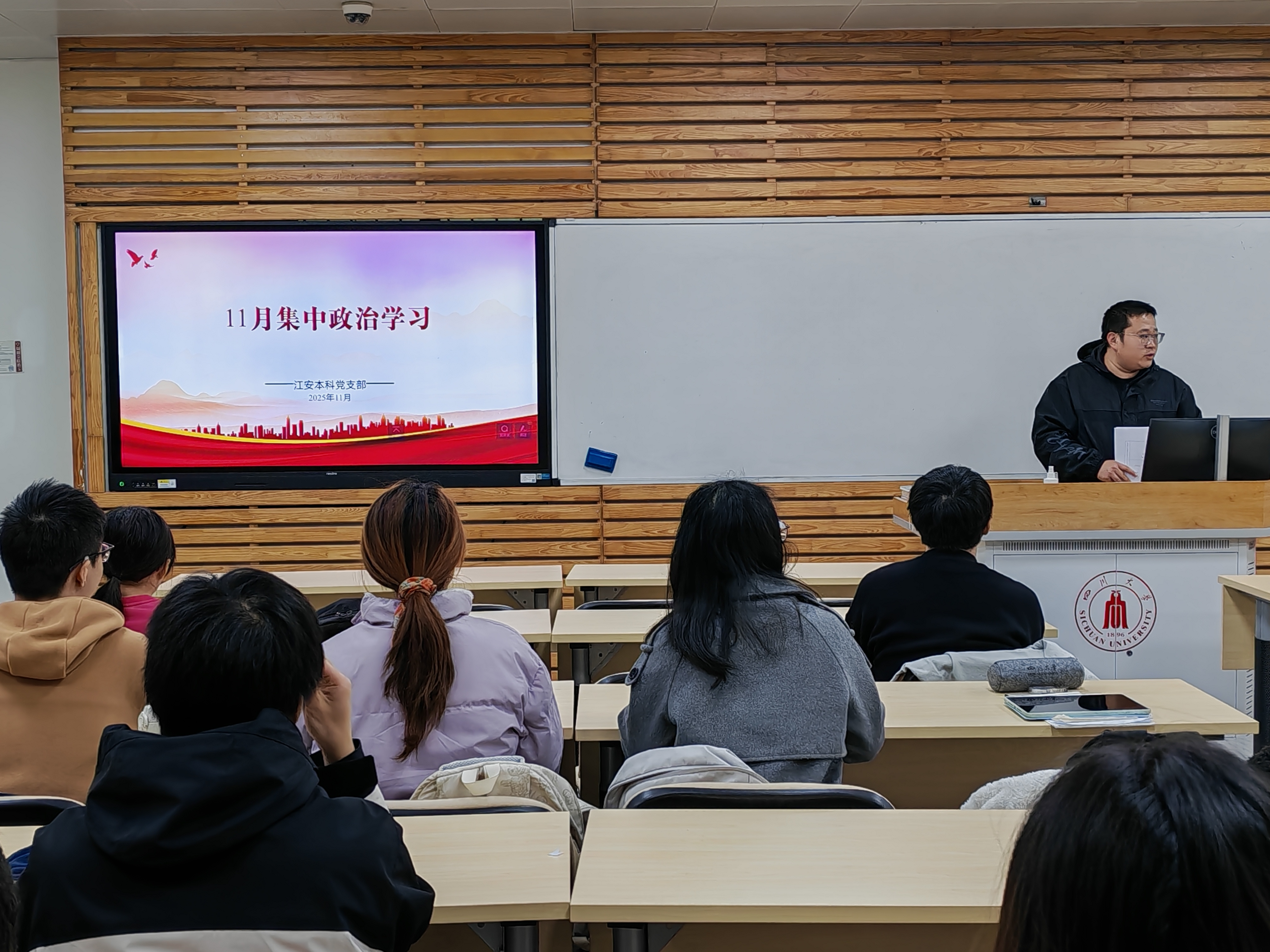 江安本科党支部在望江校区基础教学楼A308组织开展11月集中政治学习、“红途轮忆,青讲党史”主题活动暨读书分享会。支部书记申鑫,支部党员、发展对象及部分入党积极分子参会。