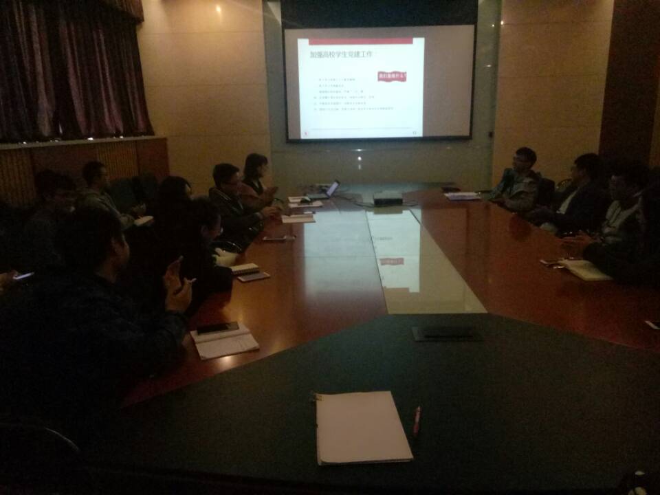 下午四时,支部书记马菁勖主持召开会议。本次专题讨论学习会主要包括全体党员以及积极分子学习十九大精神专题会议、全体党员联系人汇报积极分子考察情况和支委会总结汇报最近工作情况三个部分。