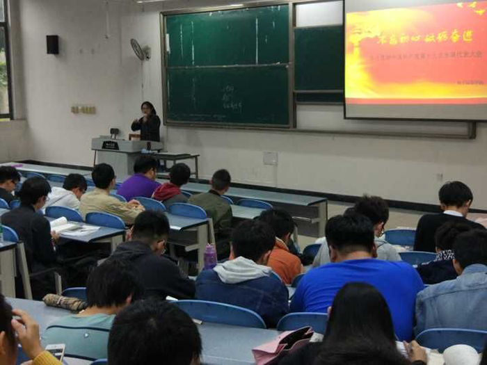 大力培养全方面,高素质的新时代青年,注重学科交叉建设,注重提升学生综合素质。电子信息产业具有与时俱进特点,这更加要求同学们必须具有全局观念,把握中国和世界发展趋势。”十九大“指明了中国今后发展方向,明确了中国发展任务,在有利于大学生自我定位和自我目标设定的同时,也反向促进了新青年力量持久注入到中国建设之中。这次课堂的开展,使本学院学生在课业压力大的情况下,有机会接触有关“十九大”的相关信息,一定程度上纠正了“两耳不闻窗外事,一心只读圣贤书”的现状。希望同学们在“十九大”的引领下,“不忘初心,砥砺奋进”。