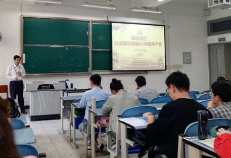 一些优秀的典型人物介绍,邰书记告诉我们,信仰共产主义,全心全意为人民服务,为共产主义奋斗终身才是正确的入党动机。在生活中,我们应以党员的标准要求自己,以实际行动加入中国共产党。课程结束后,徐灿国老师做了总结发言,他希望同学们结合邰书记的讲课内容,谨记历史使命与时代责任感,在大学中通过学习不断充实自己,充分利用大学资源,完善自己,拔高自己的人生境界。通过这次党课,使学员们思想上进一步端正了入党动机,增强了实现中国梦的新时代历史责任感。