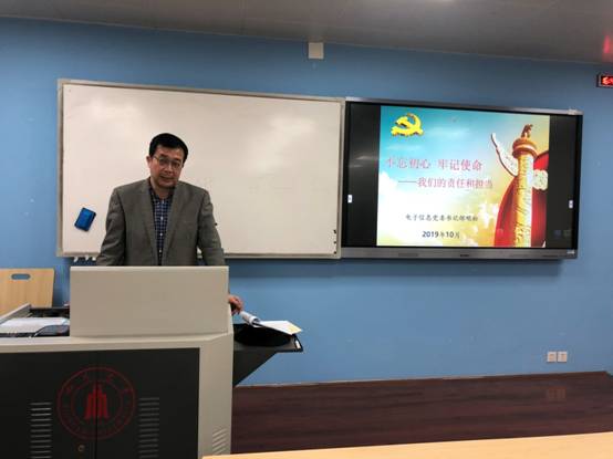 党委邰明松书记、党委陈笃海副书记、杨阳副院长、教工及学生党支部书记、支委参加了此次会议。会议由邰明松书记主持,主要分为三个部分:支部党建汇报调研会、“铭初心,担使命”提升基层组织工作水平主题党课、“我们的责任和担当”主题党课。