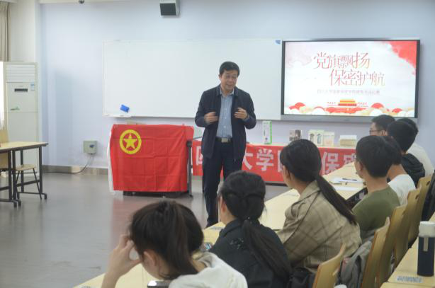 党委邰明松书记发表讲话,围绕“学史明礼,学史增信”这一主题做出了重要的指导。他指出,当代大学生要学四史,提高思想觉悟。同时强调了共青团基层工作的重要性,要充分发挥好基层团组织的政治功能,要加强团支部的建设,开展好主题团日活动,并对保密专业开展这样的主题团日活动进行了赞许,并祝愿本次活动圆满成功。