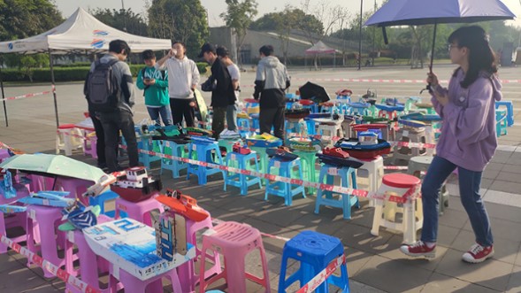 本次船模设计大赛初赛共分为检船答辩、青春广场外观评分以及水上竞速三个阶段。3月27日8:15,检船答辩在小欧视频
