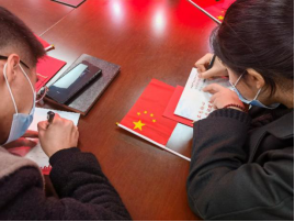 ——写一段服务承诺。为践行“全心全意为人民服务”的根本宗旨,全体党员在政治生日这天收到了一张特别的“生日贺卡”——党员服务承诺卡。各位党员在承诺卡上写出了自己对身边群众的承诺。