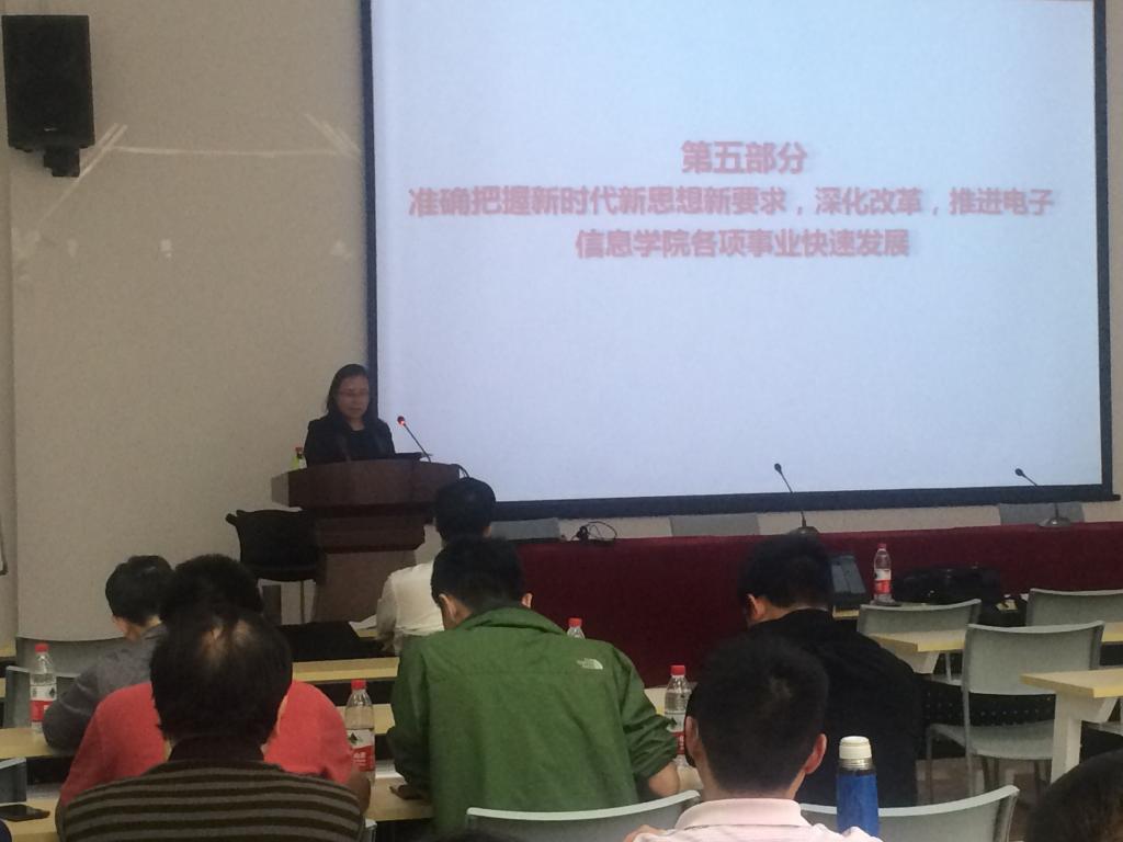 本次专题报告主题在“在习近平新时代中国特色社会主义思想指引下从严治党、深化改革和狠抓落实,推进学院‘双一流建设’事业不断前进”。会上,邰书记主要从学习贯彻习近平总书记在十九届中央纪委二次会议上的重要讲话、学习贯彻十九届中央纪委二次全会精神、认真落实教育系统全面从严治党工作视频会建设和认真落实小欧视频