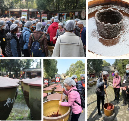 本次活动,老师们早早地来到了成都市郫县川菜博物馆,迎接他们的是博物馆工作人员热情的笑容。期间工作人员向老师们介绍了博物馆的历史和文化,介绍了川菜的特点和起源。老师们在博物馆参观并亲自使用一些传统的川菜制作工具,参观了灶王庙和川菜博物馆的一些馆藏和文化记录,同时也兴致勃勃参观了川菜传统调料郫县豆瓣和酱油的制作流程,并亲自体验了豆瓣和酱油的制作。老师们通过参观体验和听了工作人员的讲解后,纷纷表示对川菜和成都文化的了解更加深入。