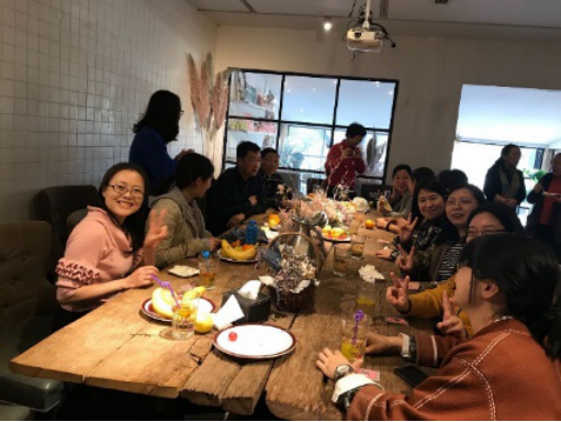 即将退休女职工陈沧海老师生日,院工会为她精心准备了生日蛋糕,全体老师为她唱起了生日快乐歌,陈老师在欢乐愉快的氛围中度过了一个难忘的生日。