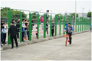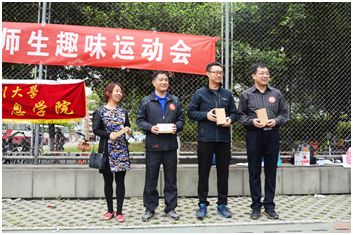 本届师生趣味运动会比赛项目新颖,形式丰富,学院领导老师和学生配合十分默契,既专注于技术方面的探讨,又相互打气,一起享受着比赛带来的刺激和乐趣!尤其是“懒惰的自车”和“丢沙包”两个比赛项目,受到了老师同学们的一致好评。趣味4×100米接力赛也不遑多让,其中的滚铁圈游戏环节,更加唤起了老师们儿时的记忆。经过两个小时的比赛,各个项目都决出了前三名。之后举行了闭幕式和颁奖典礼,学院领导向获奖者颁发了精心准备的小奖品。颁奖典礼结束后,所有师生合影留念后,本届师生趣味运动落下帷幕。