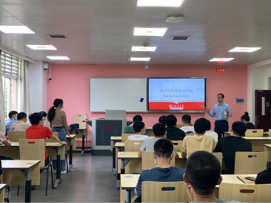陈林老师首先根据今年总体考研形势向同学们介绍考研基本情况,详细地分析了分数线,报录比等具体数据。介绍完基本情况之后,廖勇明副书记介绍了目前研究生招生情况,并分享了研究所调剂的重点信息,为同学们指明另一条道路。严华教授鼓励同学们要自信,提前了解自己意向研究方向,并提出复试是双向选择的过程,要把握好自己作为学生的权益,积极了解并选择自己感兴趣的研究方向;同时就导师选择,复试简历,复试经验,衣着举止等方面为同学们做了详细的教导。最后,严华教授根据同学提出的问题做了针对性解答,并再次强调了考研复试重点问题。