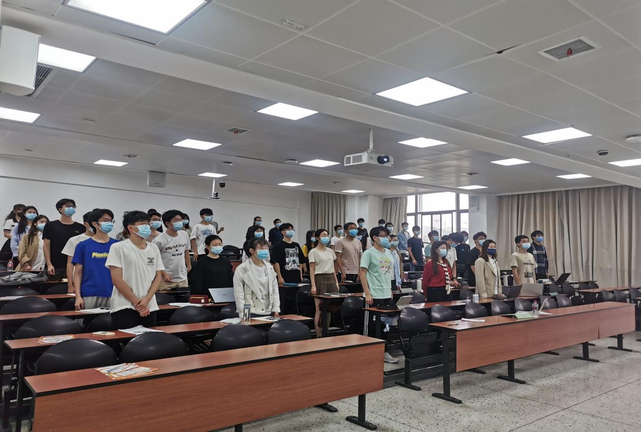 发展对象们起立奏唱国歌