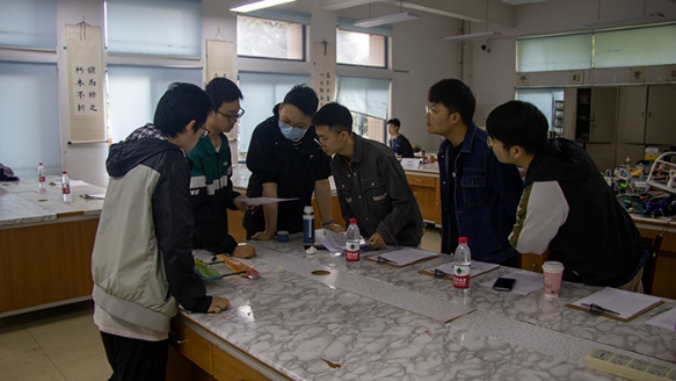 的大四及研究生同学李建平、谢雷、韦创、严康受邀作为本次检船答辩环节的评委。