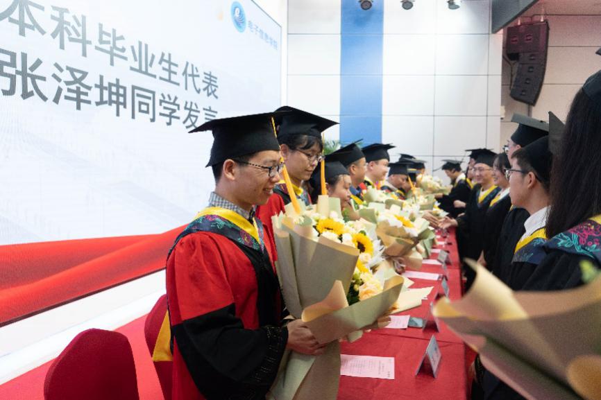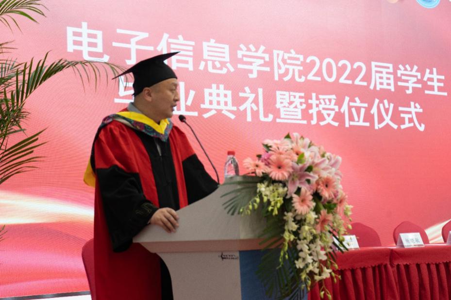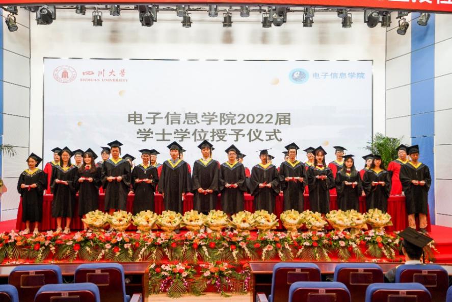 学院党委书记邰明松,党委副书记廖勇明,副院长张启灿、雷印杰、卿粼波,教师代表何小海、郭庆功、梁厚昆、杨晓敏、汪莎、李小伟、钟哲强、宁芊、王策,辅导员何阳与陈林老师,以及毕业生家长代表和全体2022届毕业生参加典礼。副院长雷印杰主持典礼暨授位仪式。