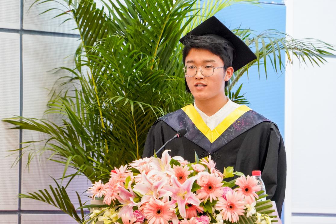 本科生张泽坤同学在发言中表达了同学们对离开母校的不舍,他表示同学们将铭记川大的教导,认真践行川大校训“海纳百川 有容乃大”,去聆听、去思考,实学实干,脚踏实地,在真刀真枪的实干中成就一番事业,在攀登人生高峰中不断追求卓越。