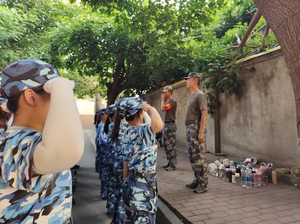 同学们向教官们敬礼